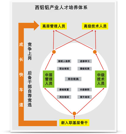 西铝铝产业注重营造公平、公正、公开的人才竞赛环境,通过竞争上岗、后备干部竞选、述职评审和KPI绩效管理等多种方式公开选拔人才、破除了资历限制,使一大批优秀人才脱颖而出和迅速成长。